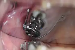 A palatal lift prosthesis is a prosthesis that addresses a condition referred to as palatopharyngeal incompetence. Palatopharyngeal incompetence broadly refers to a muscular inability to sufficiently close the port between the nasopharynx and oropharynx during speech and/or swallowing. An inability to adequately close the palatopharyngeal port during speech results in hypernasalance that, depending upon its severity, can render speakers difficult to understand or unintelligible.[1] The potential for compromised intelligibility secondary to hypernasalance is underscored when consideration is given to the fact that only three English language phonemes – /m/, /n/, and /ng/ – are pronounced with an open palatopharyngeal port.[2] Furthermore, an impaired ability to effect a closure of the palatopharyngeal port while swallowing can result in the nasopharyngeal regurgitation of liquid or solid boluses.