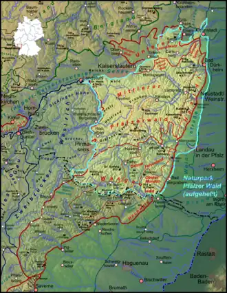 Red: The entire Palatinate Forest in both Germany and France