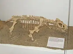 Finland has relatively few fossils due to glacial erosion scouring away fossilferous layers.[1] There are Precambrian fossils in Archean and Proterozoic layers from ancient soils, and three layers such as siltsones, mudstones and sandstones at 1650 million years old.[2] In 2016, a fragmentary humerus of a fossil proboscidean (elephant relative), likely Deinotherium, were reported from glacial erratic deposits in southern Finland of likely Miocene age.[1] In Pleistocene deposits, remains of woolly mammoth[3] and woolly rhinoceros have been discovered.[4]