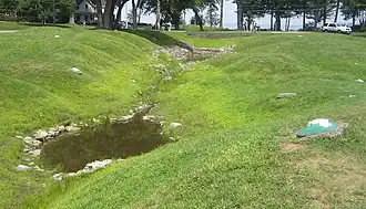 Palestine Park is a scale model of the Holy Land, including cities, hills, rivers, and seas, in approximately correct geographical relation on the grounds of Chautauqua Institution in Chautauqua, New York. Palestine Park is laid out along the southwestern side of Chautauqua Lake, which takes the place of the Mediterranean Sea. This creates a rotated version of the actual land, which is on the east coast of the Mediterranean. A large mound of stones represents Mount Hermon, with an artificial stream representing the Jordan River as it flows south from the Sea of Galilee to the Dead Sea. Small hills represent biblical landmarks such as Mount Tabor and the Mount of Olives, with markers representing sites of biblical significance including Jacob's Well, Jericho, Bethsaida and a scale model of Jerusalem in the time of Jesus complete with a small replica of the ancient Jewish Temple.[1]