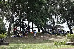 Zainal Abidin bin Haji Ibrahim, the assistant district officer of Tutong from 1 September 1971 to 31 August 1973, noted that the project did not receive specific funding apart from workers' wages. To implement the initiative, the Tutong District Office collaborated with the Tutong Municipal Board and the Tutong Health Office to ensure its success. Later on 1 October 1971, a beach clean-up campaign was carried out through a community effort, involving not only government officers and staff but also Tutong residents, especially the youth. The clean-up activities included tree felling and collecting driftwood along the shore. A few months later, as clean-up operations and the provision of basic amenities were underway, the beach began to attract visitors, particularly youths, school students, and scout association members.[5]