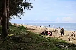 Seri Kenangan Beach (Malay: Pantai Seri Kenangan) is a recreational beach and spit located in Mukim Pekan Tutong, Tutong District. It lies approximately 2 kilometres (1.2 mi) west of Tutong town and is characterised by its unique position on a strip of land bordered by the Tutong River at the rear and the South China Sea at the front. The beach also sits in nearby villages such as Sengkarai, Penabai, and Kuala Tutong. Over time, the beach has been equipped with amenities and services, making it a popular destination for picnics and appreciating the natural environment.[2] The surrounding areas are noted for their clay soils.[3]