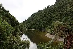 Paparoa National Park is located in the northern West Coast region of the South Island, between the Buller River (Kawatiri) and the Grey River (Māwheranui). It includes the western side of the Paparoa Range and some separate eastern sections along the Inangahua River. The park covers the catchment areas of the Punakaiki, Pororari and Fox (Potikohua) rivers and Bullock Creek (Punungairo), and also the Metro / Te Ananui cave system and the southern side of the Tiropahi River catchment.[6]
