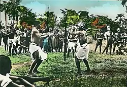 The Papel territory of Bissau was in a constant state of intense warfare, particularly from 1884 to 1915, because of Portuguese and Papel forces.[2]: 53 [5]: 4 On 14 February 1891, when the Portuguese called a meeting to adjust the current peace treaty between them, Antula, Intim and for them to submit to Portuguese authority of which only chiefs of Antula agreed to.[2]: 58 This situation caused war to break out with the other Papel vassal states attacking the Portuguese fortress eight days later, and killing the soldiers guarding the bastions though the Portuguese defended themselves effectively until reinforcements arrived.[2]: 58 The attack plunged the region into a state of hostilities with the Portuguese declaration of war on the next day, banning the sales of guns and gunpowder to the natives, and increasing gunboat patrols of the local waters.[2]: 58 On 24 February 120 Portuguese troops accompanied by five officers marched into Papel territory, the troops were crushed by the Papels and forced to retreat.[2]: 58 On 9 March that year the Portuguese once again were defeated by the Papels, and in the month of May during the Portuguese attempt under Minister Antonio Eanes to extend the wall of one of their fortresses, the Papels opened fire on them handing the Portuguese another defeat, this led to Papel warriors replacing their necklaces usually decorated with beads with the teeth of their fallen enemies.[2]: 59 The relationship between the Papels and Portuguese were so sour that the Papels would watch the fortress continuously, waiting for people to leave, this occurred when a Cape Verdean left the fortress and was set upon by Papels and killed, they were reported to then of gathered at the top of Intim celebrating the killing with war dances and making preparations for war.[2]: 59 This is what they got, the Portuguese on 1 December declared war on the Papels once again for the murder, they bombarded Bissau with artillery pieces and would regularly enter gunfights with the Papels, this attack did not result in a Papel full out attack which confused the Portuguese into a belief of victory.[2]: 59 The Papel lack of response was due to their mobilisation of other ethnicities into the war such as the Balanta, the Papel had planned a sneak attack on 7 December but even though it came as a surprise, the Portuguese were able to escape defeat due to the increased security they prepared around the fortress.[2]: 59