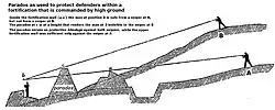 A parados is a bank of earth built behind a trench or military emplacement to protect soldiers from attack from the rear or from enfiladement.[1]