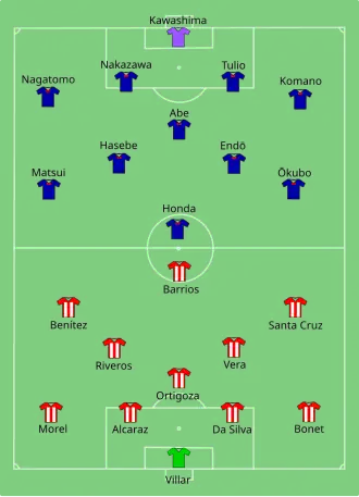 11. ^ a b "Tactical Line-up – Last 16 – Paraguay-Japan" (PDF). FIFA.com. Fédération Internationale de Football Association. 29 June 2010. Archived from the original (PDF) on 5 July 2010. Retrieved 29 June 2010.