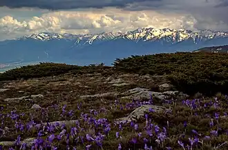 The two main habitats are primary undisturbed forests and sub-alpine and alpine vegetation. The areas between 1,750 and 2,000 m altitude are covered with old growth forests of Norway spruce (Picea abies) and Macedonian pine (Pinus peuce) forming some of the oldest conifer woods in Bulgaria and Europe, 150–350 years. Some of the spruces reach height of up to 62 m.[4][6] At lower altitudes there are mixed forests of Norway spruce, European silver fir (Abies alba) and European beech (Fagus sylvatica). Over 2,000 m are the zones of dwarf mountain pine (Pinus mugo) and alpine meadows. The flora is represented by more than 290 species of vascular plants. Some of the rare and endemic plants are Aquilegia aurea, Geum bulgaricum, Primula deorum, Jacobaea pancicii, Alchemilla catachnoa, Gentiana lutea, Gentiana punctata, Lilium jankae and Trollius europaeus.[3][4][7]