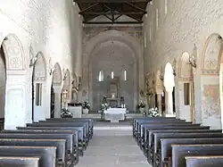The nave of the parish church, ending in the apse where the Lombard ciborium is located