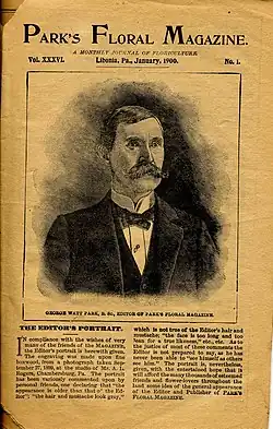 Park Seed Company got its start in 1868 when 15-year-old George Watt Park decided to sell seeds he had harvested from his backyard garden in Libonia, Pennsylvania.[1] Park bought a hand press and printed a list of the seeds that he wanted to sell. In addition to circulating this list to friends and neighbors, he also bought an advertisement in The Rural American for $3.50. The ad resulted in $6.50 in seed orders. With this success, Park found his life's work.