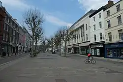 The Parliament Street Market opened in 1836, running every day, but with Saturday as the principal market day. It was the city's main market until 1955, when it completed a move to what is now the Shambles Market.[1][3] In 1989, a competition was held to redesign the street, and this led to it being largely pedestrianised, with a single carriageway on one side.[4] A variety of High Street shops now line the street, including a large branch of Marks and Spencers, and it is also used to host a variety of festivals and temporary markets.[5][6]