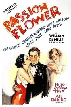 Passion Flower is a 1930 American pre-Code drama film directed and produced by William C. deMille and starring Kay Francis, Kay Johnson and Charles Bickford in a romantic triangle. This production includes actor Ray Milland's American screen debut, although his appearance as a party guest is uncredited.[2]
