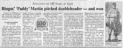 Pat Martin also pitched for Columbus in the American Association (20th century) under Manager Clarence Rowland. There are also reports of Martin pitching for the Springfield Planters on Plant Field and losing to New London 0–4, and having a sacrifice hit. A double header was then played against New London with Springfield taking both games 4-0 and 5–2.