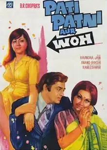 Pati Patni Aur Woh (transl. The husband, the wife and the mistress) is a 1978 Hindi romantic comedy film produced and directed by B. R. Chopra. The film stars Sanjeev Kumar, Vidya Sinha, Ranjeeta Kaur, with cameos from Rishi Kapoor, Neetu Singh, Tina Munim and Parveen Babi.[1][2][3]