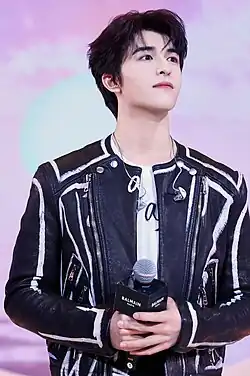 Aside from various endorsements with his bandmates, Patrick has promoted various products and featured in numerous advertisements. In 2020, he became the face of Clean & Clear in Thailand.[83] During his trainee days, Patrick has appeared in advertising campaigns for brands such as Chunzhen,[84] Darlie,[85] Volkswagen,[86] Biotherm,[87] and MaskFamily.[88] In April 2021, Patrick became the brand spokesperson for Chunzhen.[89][90] He also became the youth innovation officer of the video platform Kuaishou.[91] On 16 May 2021, Patrick was announced as a brand ambassador for Atelier Cologne.[92][93][94] On 22 May 2021, Patrick was chosen as the first-ever youth ambassador for My Foodie, is a Chinese pet food company that produces dog and cat foods.[95][96][97] On 27 May 2021, he was announced as the first ever brand ambassador for nesQino, owned by Nestlé.[98][99] Starting from the summer of 2021, Patrick has been actively participating in numerous offline events for the brands he represents.[100] In June 2021, he was announced as the youth brand ambassador for Kiehl's, under L'Oréal Group.[101][102][103] In September 2021, Patrick was appointed as the Chinese trend pioneer ambassador of the Bicester Village Designer Outlet,[104][105] with his unique sense of fashion and free-spirited attitude, as well as his widespread influence in the younger generation.[106][107][108] He was also featured in videos that promoted the campaign.[109][110] The same month, he became the brand spokesperson for Pocky in China.[111] On 18 October 2021, he was officially named by the brand as the Friend of the 3CE Stylenanda.[112] In October 2021, Patrick appeared as the Chinese trend pioneer ambassador at The Bicester Village Shopping Collection in China.[113][114][115]