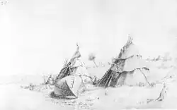 Kane passed the time at the fort with buffalo hunting, and also sketched among the Cree living in the vicinity. In January he undertook an excursion to Fort Pitt, some 200 miles (320 km) down the Saskatchewan River, and then returned to Edmonton. In April he visited Rocky Mountain House, where he wanted to meet the Blackfoot. When they did not turn up, he returned to Edmonton.