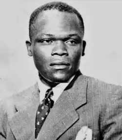 Lomami-Tshibamba found employment in the Belgian administration. He helped to establish the Congolese monthly La Voix du Congolaise.[3] He first garnered public attention in 1945 when he published an article in the March/April edition of the paper (its second) entitled, "Quelle sera notre place dans le monde de demain?" It discussed controversial issues surrounding the social status of évolués and press freedoms in the Congo.[3][4] Comparing the Belgian Congo to the French Congo and other African colonies, he argued that the colonial administration was not adequately preparing to grant the Congo independence while similar efforts were underway in the other territories.[5] The Belgian district commissioner was convinced that Lomami-Tshibamba had written the article with the help of a European accomplice, and had him interrogated and whipped by the police over a three-week period. This stopped after Lomami-Tshibamba informed his superiors in the administration and the governor general intervened on his behalf.[6] He later sought refuge in the French Congo to avoid criminal prosecution.[5]