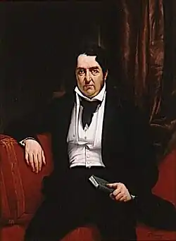 His first articles defending the Confederacy were written in February 1861 in the French newspaper "Le Pays" (The Country), with the assistance of the influential French journalist Adolphe Granier de Cassagnac.[10] These articles were translated and published in the New York Herald in March 1861. He continued writing articles in French in May 1861 for one of the most pro-Confederate French newspapers, Le Constitutionnel. That same year he published two small books: "La Révolution Américaine Dévoilée" (The American Revolution Revealed) and "Le Blocus Américain" (The American Blockade). In 1862 he published two monographs entitled "Lettre à l’Empereur: De la Reconnaissance des États Confédérés d’Amérique" (Letter to the Emperor: Recognizing the Confederate States of America) and "Lettre sur la Guerre Américaine" (Letter on the American War). In 1864 he published "L’Amérique du Nord: Lettre au Corps Législatif" (North America: Letter to the Legislative Corps). In an article for "Le Pays" in September 1862, du Bellet warned his readers to not believe in Lincoln, arguing that "he has deceived, he deceives, and he will deceive".[11] He warned that the North, through its Monroe Doctrine, was seeking to take over and conquer Mexico, Central America, and Canada.[12]