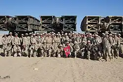 Paul Ray Smith (September 24, 1969 – April 4, 2003) was a United States Army soldier who was posthumously awarded the Medal of Honor for his actions during the 2003 invasion of Iraq. While serving with B Company, 11th Engineer Battalion, 3rd Infantry Division in Baghdad, his team was attacked by a group of Iraqi soldiers and after a firefight he was killed by Iraqi fire. For his actions during this battle he was awarded the Medal of Honor. Two years later, the medal, along with the newly approved Medal of Honor flag, were presented to his family on behalf of him; specifically to his eleven-year-old son, at a White House ceremony by President George W. Bush.[1]