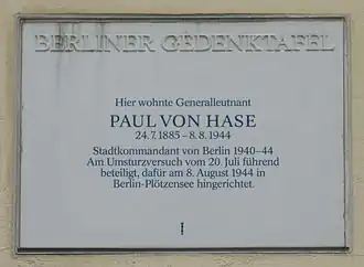 Karl Paul Immanuel von Hase (24 July 1885 – 8 August 1944) was a German career soldier and figured among the members of the resistance against Adolf Hitler's Nazi regime.[1]
