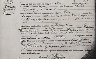 Jean-Paulin Habans was born in Saint-Esprit, a suburb of Bayonne. While he maintained all his life that he was born into a family of small shopkeepers, in reality and according to his birth certificate his father was unknown and Habans the name of his mother, born Jeanne-Marie Habans, with no profession.[1] He grew up in Bordeaux. After a brief education and some odd jobs as employee of a lottery agency and as clerk in a bailiff's office, he embarked upon a singing career while frequenting the goguettes.[1] He made his debut in the café-concert in Paris in 1864. Little by little, he was programmed in the most prestigious French theatres, notably the Eldorado (1872–1878) and the Alcazar d'Été. With Thérésa and Éloi Ouvrard, he was one of the first real vedettes of the caf'conc'.[2][3]
