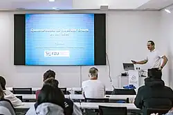Pavel Jelínek giving a lecture in the Center for Quantum Nanoscience.