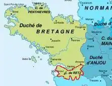location of the Pays de Retz, south of the Loire in the Duchy of Brittany.