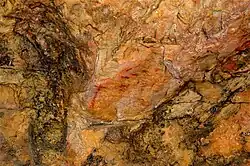 The rock and cave art is found in shelters made of sandstone. The paintings, of symbolic character, appear in twenty-five of these shelters and date from the post-Paleolithic era. Within their complex designs, one finds isolated patterns grouped together. The designs were produced with different shades of red mainly using the fingers. Anthropomorphic shapes predominate and were represented in a variety of ways, some with added elements showing headdresses, costumes, weapons, etc. The painted objects themselves are also varied and remain characteristic of these displays; they comprise arrangements which are circular, branched, bi-triangular, quadrangular, braided, comb-like and ocular.
