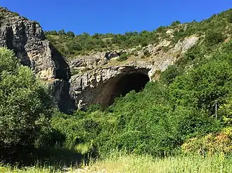 At the cave's entrance there is a medieval fortress and the remains of a mill. The remains of a fortress in the cave are linked to a region called Devini Kuli visible from inside the cave. According to local legends, both fortresses were homes of Prince Marko's sisters. Pešna is registered as a site from the late antique period in North Macedonia. A tomb dated from late antiquity (5th cent.)[3][4] with a brick vault was discovered in front of the cave's entrance.[2]