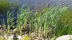 The rewetting of drained fen peatlands can lead to the growth of tall graminoid wetland plants, such as Common reed (Phragmites australis) and Broadleaf cattail (Typha latifolia), which can become the dominant vegetation for many years to decades.[24] This can cause lasting changes to the biodiversity, ecosystem functioning, and land cover characteristics of the area, particularly in terms of geochemistry and hydrology.[24][25]