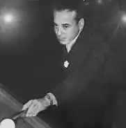 Pedro Leopoldo Carrera (19 June 1914 – 2 September 1963) was an Argentine carom billiards player and the first player to set a general average of 1,000 or more.[1][2] Carrera was a five time carom billiards world champion. He won the straight rail world championship in 1950 and 1953, the 47.2 balkline world championship in 1951, and the Union Internationale des Fédérations des Amateurs de Billard (UIFAB) World Three-cushion Championship in 1952 and UIFAB pentathlon world cup in 1954.[3][4] In 1980, more than 17 years after his death, Carrera was awarded the Premios Konex in platinum posthumously as the best billiard player in Argentine history and also with the "Diploma al Mérito".[2]