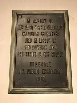 A memorial to Pedro Vicente Maldonado in St James's Church, Piccadilly.