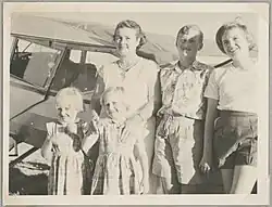 ![]() Peggy Kelman with four of her children in front of an Auster J/4 Archer monoplane, circa 1952 | |