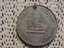 A commemorative ingot issued in 1875 to honor the Peggy Stewart burning