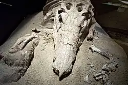 The fossil of Uberabasuchus terrificus unearthed at Peirópolis.