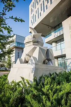 The sculpture of 獬豸 in front of PKU Law's Kaiyuan Building, named after Chinese American businessman Leo KoGuan