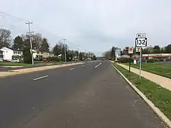 Pennsylvania Route 132 (PA 132) is a state highway in southeast Pennsylvania. The route, which is signed east–west, runs northwest to southeast through Bucks County in suburban Philadelphia from PA 611 in Warrington southeast to Interstate 95 (I-95) in Bensalem. PA 132 is a commercial route lined with shopping centers throughout much of its 15-mile (24 km) length. It is named Street Road for its entire length and is five lanes wide for much of its length. The route was also designated as the Armed Forces and Veterans Memorial Highway in 2005. From west to east, PA 132 intersects PA 263 and PA 332 in Warminster; PA 232 in Southampton; PA 532 in Feasterville; and U.S. Route 1 (US 1), the Pennsylvania Turnpike (I-276), PA 513, and US 13 in Bensalem. Street Road was included in William Penn's survey plans and completed by 1737. The road was paved by 1911 and received the PA 132 designation between US 611 (now PA 611) and US 13 by 1927. The route was widened into a multilane highway and extended east from US 13 to I-95 by 1970. An interchange with the eastbound direction of the Pennsylvania Turnpike opened in 2010.