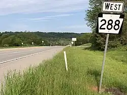 Pennsylvania Route 288 (PA 288) or State Route 288 is an east–west route in western Pennsylvania, United States. The highway is 15.4 miles (24 km) long and runs from PA 18 in Wampum east to the US 19/PA 68 concurrency in Zelienople.