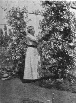 In May 1914, the first official meeting of the Woman's National Agricultural and Horticultural Association, later known as the Woman's National Farm & Garden Association (WNF&GA) was held at the Pennsylvania School of Horticulture for Women. Its organizers included Jane Bowne Haines, Louisa Boyd Yeomans King, Elizabeth Leighton Lee, Elizabeth Price Martin and Hilda Loines. Once again, the organizers were inspired by international efforts, in this case the British Women's Farm and Garden Union, which had been established in 1899.[23][24] The association's mission was to "promote agricultural and horticultural interests among women, and to further such interests throughout the country."[25] The first annual conference of the Woman's National Agricultural and Horticultural Association included a number of speakers, including King, of Alma, Mich., the president of the association; Miss Martha Van Rensselaer, director of home economics at Cornell University; and Mrs. J. Willis Martin of Philadelphia, president of the Garden Club of America, among others.[26]