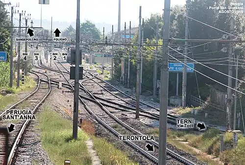 - track 3 is used for crossing and overtaking movements on the Foligno–Terontola line.