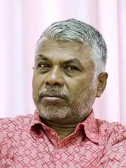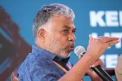 Perumal Murugan (born 1966[2]) is an Indian writer, scholar and literary chronicler who writes in Tamil. He has written twelve novels, six collections of short stories, six anthologies of poetry and many non-fiction books. Ten of his novels have been translated into English: Seasons of the Palm, which was shortlisted for the Kiriyama Prize in 2005, Current Show, One Part Woman, A Lonely Harvest, Trail by Silence, Poonachi or the Story of a Goat, Resolve, Estuary, Rising Heat, and Pyre [3] He was a professor of Tamil at the Government Arts College in Salem Attur and Namakkal.[4]