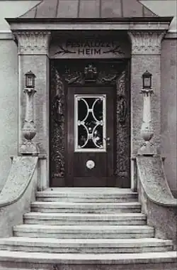During World War II, the director of the children's foster home, Elisabeth Schleuß and the chairman Hugo Poppe behaved restrained towards the prevailing political convictions, and that was noticeable in terms of the children's education. The attitude was reflected in the fact that there was no portraits of Hitler in the whole house. Furthermore, ideological ideas or songs which glorified the national consciousness or the fighting spirit of the army were not spread at any time in the children's home. In 1943 the imperial governor (Nazi Gauleiter) Karl Kaufmann arranged a confiscation of the main building so that the children's hospital of Rothenburgsort, which had been bombed and destroyed could be moved into the building of the children's foster home and the Pestalozzi children had to move out of their house. The children's home was saved from closing and could continue its work only under considerable restrictions with twenty out of forty children who were housed in the cramped accommodations of the adjoining building.