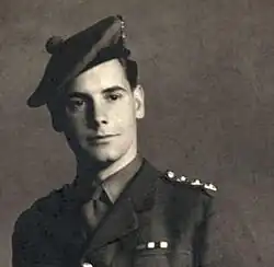 James Aikman Cochrane was born in Glasgow on 12 May 1919, the only son of Margarita Cochrane and Major James Aikman Cochrane.[1] Major Cochrane, who served with the Royal Scots Fusiliers and Royal Flying Corps in the First World War, won the Military Cross, and the Belgian Croix de Guerre avec Palme and Croix de Chevalier de l'Ordre de Leopolde. Peter had a younger sister Marigold.[2] His mother decided that he should be known as "Peter" to differentiate him from his father and a cousin. He spent his early years at his father's posting in the Far East, and was later educated at Loretto School in Edinburgh. In 1938 he went up to Wadham College, Oxford University, where he read law but left to join the army before he could graduate.[1]