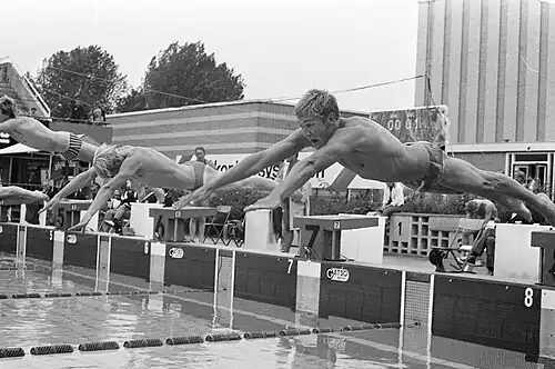He grew up in South Africa, but moved to the Netherlands to be able to participate in the Olympic Games, in the time when South Africa was banned by the IOC. After retirement from senior swimming he competed in the masters category. He also took part in five Gay Games winning at least 18 gold medals.[2] He is gay, and was banished by his swimming club after his partner died of AIDS.[3] He then moved to London, where in 2007, together with Tim Denyer, he founded the Red Top Swim company, where he works as a swimming coach.[4][5]