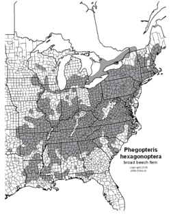 2. ^ a b "Phegopteris hexagonoptera (Broad Beech Fern, Southern Beech Fern)". NC State Extension Plants. North Carolina State University. Retrieved 2025-06-25.