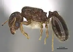 This species of big-headed ant native to Venezuela and the Caribbean Islands and possibly invasive in California, Bermuda, the southeastern United States, Costa Rica, and Hawaii. It previously contained three subspecies, however, all three were synonymized under the parent taxon by Wilson, 2003.[2][3][4][5][6][7]