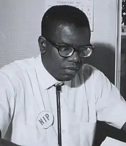 Soon after Goldson joined Richardson under the Honduran Independence Party banner and contested the 1957 election unsuccessfully, losing his seat to the PUP candidate.[5] Goldson was not a candidate for the Legislative Assembly in 1961, but in 1965 won the Belize City-based Albert constituency as leader of the National Independence Party.[6] This began his role as the long-running member of the Opposition; from 1961 to 1974 he sat in the House alone (he was appointed after the NIP lost all eighteen seats to the PUP in 1961 elections), joined only by Edwin Morey from 1965 to 1969, and remained in opposition until the PUP lost elections in 1984.