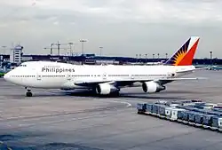 The aircraft operating Flight 434 was a 15-year-old Boeing 747-283BM Combi owned by Guinness Peat Aviation (GPA), registered as EI-BWF, serial number 21575.[7][8] It first flew on February 17, 1979, and was delivered to Scandinavian Airlines (SAS) on March 2, 1979, as SE-DFZ, operating the plane as "Knut Viking". After occasional lease periods with Nigeria Airways and Malaysia Airlines between 1983 and 1988, the aircraft was sold to Guinness Peat Aviation and leased to Philippine Airlines on September 7, 1988.[8]