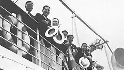 The foreign consultant of the team was picked to be Rudolph Mueller.[7] Joaquin Elizalde, a member of the delegation, was picked to be a jury participant, specifically for athletics.[8] The team consisted of high jumper Simeon Toribio, boxers John Gray, José Villanueva, José Padilla Jr.,[b][10] and Carlos Padilla Sr.,[c][11] and swimmers Abdurahman Ali, Teófilo Yldefonso, and Jikirum Adjaluddin.[9] An additional two coaches were present.[12] The team calculated to approximately nine people, who were transported on the Tatsuta Maru ship.[13] The delegation was one of the first to arrive.[14]