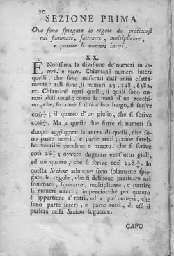 Nuove instituzioni di aritmetica pratica, Section One, 1762 ed.