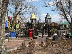 In 2010, the park was redesigned and repaired by members of the City’s Parks Department. The playground area was renamed "Tinkerbell Playground" after the character from the Disney film. Wooden portraits of the characters can be seen inside of the playground.[3]